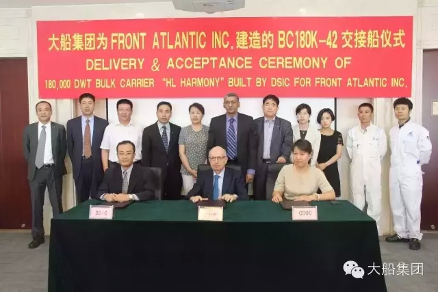 8月31日,大船集团为front atlantic inc.建造的18万吨散货船首制船42号船“hl harmony”号签字交工。 该船总长292米,型宽45米,型深24.8米,结构吃水18.3米,设有9个货舱,可以载运煤、谷物、铁矿石等大宗干散货类货品。该船首次采用“g”型主机,综合节能效果优异,经海试检验,主要经济技术指标全部达到或超过设计要求,各项性能良好,满足相关规范规则要求,达到国际先进水平。 大船集团在18万吨散货船42号船水上建造阶段取得了诸多亮点,一是横焊缝施工质量赢得船检认可。船检对该船横焊缝抽检了112米,全部一次通过;二是艏部甲板机液压油串油单元首次实现一次校验合格,为锚链在水上上船安装奠定良好基础。 三是部分项目实现免检。通过有效的内检控制,该船载重线实现水上完工交验,下水前煮炉环节、阴极保护绝缘测量、燃油溢流舱封舱等项目实现免检。